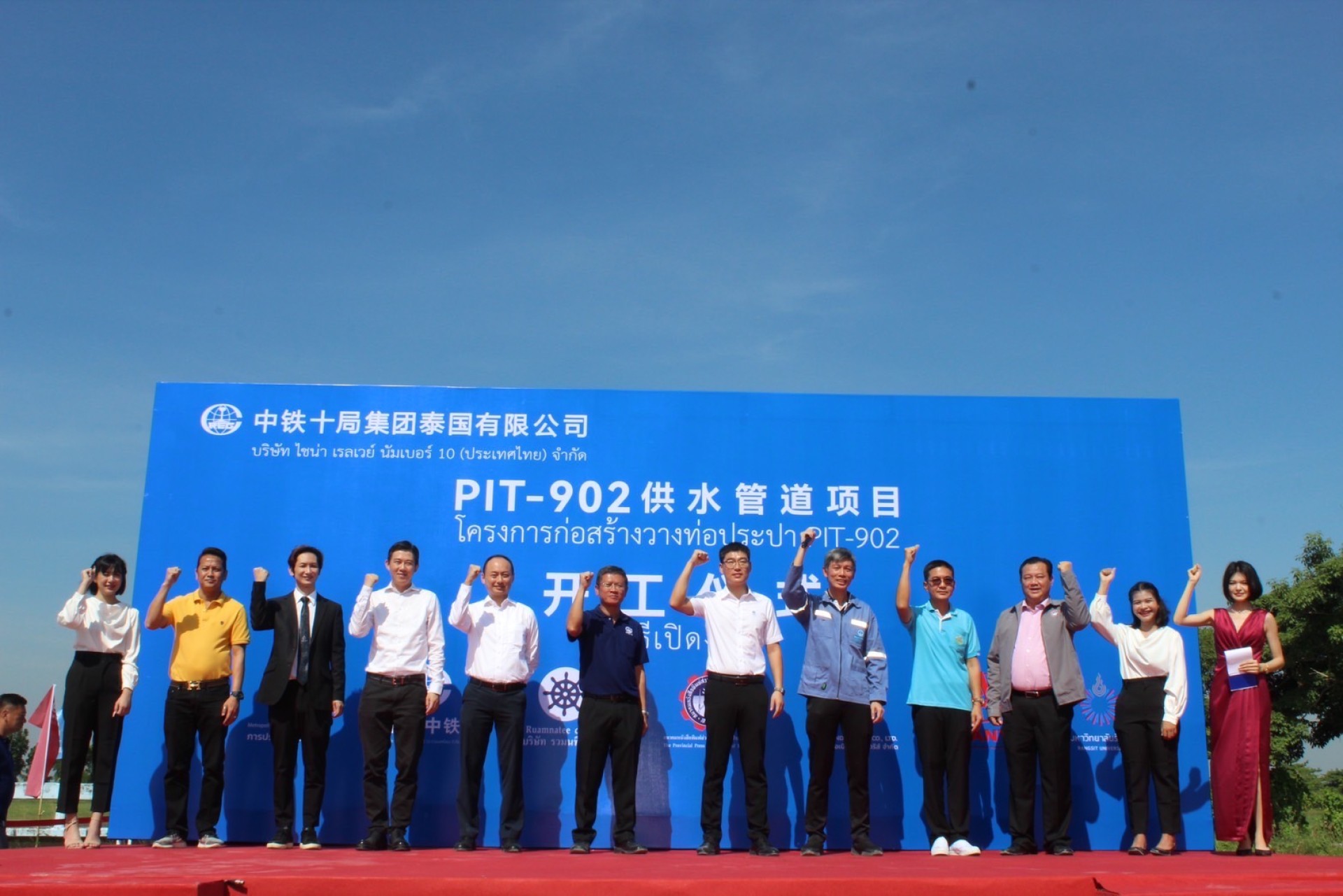 นาย ข่ง เชาว์ (Mr.kong Chao) รองประธานผู้จัดการ บริษัท ไชน่า เรลเวย์ นัมเบอร์ 10 (ประเทศไทย) จำกัด พร้อมด้วย นายหลิว ยู่ ห้าว (Mr. Lou Yu Hao) ผู้อำนวยการ โครงการสัญญา PIT-902 ร่วมเป็นประธานเปิดงาน "โครงการท่อส่งน้ำการประปานครหลวง สัญญา PIT-902 ระยะทาง 7.8 กิโลเมตร ระยะเวลาก่อสร้าง 840 วัน ณ บริเวณถนนไทรน้อย - วัดต้นเชือก ถึง ถนนบางกรวย - ไทรน้อย ของการประปานครหลวง โดยบริษัท ไชน่า เรลเวย์ นัมเบอร์ 10 (ประเทศไทย) จำกัด (ซึ่งเป็นผู้ดำเนินการโครงการในนามของกิจการร่วมค้า RLG) โดยมี นายวัฒน หมอใจบุญ ผู้อำนวยการกองก่อสร้างระบบจ่ายน้ำ 2 การประปานครหลวง ให้เกียรติมาร่วมงานและกล่าวแสดงความยินดี กับโครงการดังกล่าว พร้อมด้วยนายอนันต์ นิลมานนท์ นายกสมาคมหนังสือพิมพ์ส่วนภูมิภาคแห่งประเทศไทย ได้รับเชิญขึ้นกล่าวแสดงความยินดีในโอกาสนี้ด้วยเช่นกัน