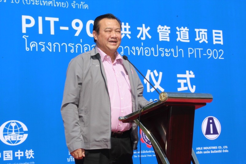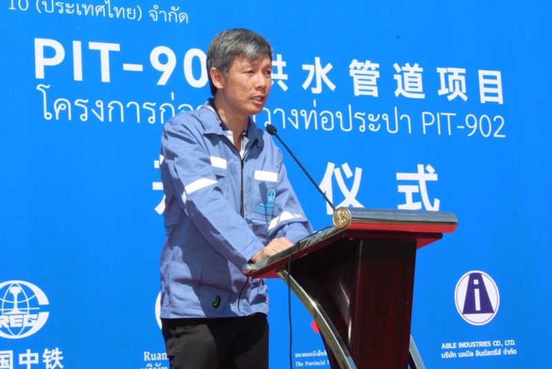 โดยนาย ข่ง เชาว์ (Mr.Kong Chao) กล่าวว่า “ในฐานะที่เราเป็นตัวแทนของบริษัท ไชน่า เรลเวย์ นัมเบอร์ 10 (ประเทศไทย) จำกัด ต้องขอขอบคุณ คณะกรรมการฝ่ายโครงการ จากการประปานครหลวง ที่ให้ความไว้วางใจ ให้บริษัทฯ ได้มีโอกาส ได้ทำงานในโครงการดังกล่าวนี้ และต้องขอขอบคุณ ทุกหน่วยงานที่เกี่ยวข้องในพื้นที่ :ได้แก่ อบต.ขุนศรี, อบต.ทวีวัฒนา, กรมชลประทาน ฝ่ายบำรุงรักษาคลองพระพิมล, ผู้ใหญ่บ้านหมู่ที่ 1 ตำบลทวีวัฒนา, ผู้ใหญ่บ้านหมู่ที่ 1 ตำบลคลองขวาง, บริษัท ร่วมนที จำกัด, บริษัท Able Industries จำกัด, สมาคมหนังสือพิมพ์ส่วนภาคแห่ง