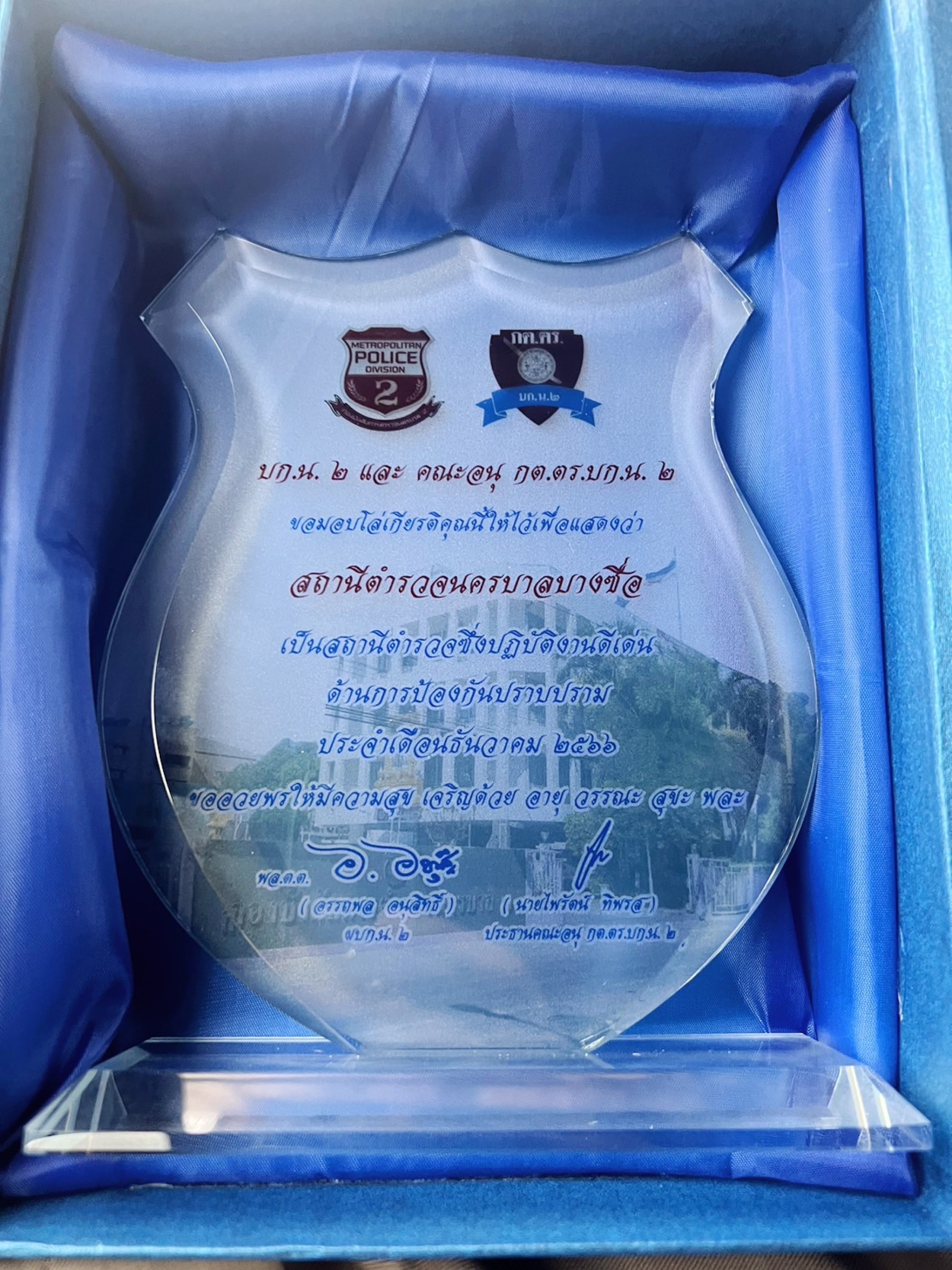 พ.ต.ท.วรภัทร สุขไทย รอง ผกก.ป.สน.บางซื่อ,ร.ต.อ.คนอง ดอนเสือ รอง สวป.สน.บางซื่อ รับโล่รางวัลเป็น