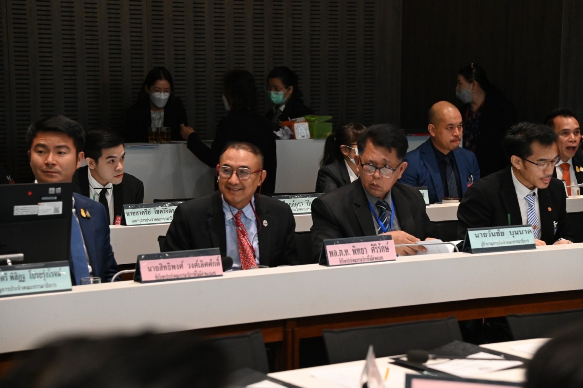 พร้อมด้วยกรรมาธิการ ที่ปรึกษา ผู้ชำนาญการ นักวิชาการ และเลขานุการประจำคณะกรรมาธิการ ด้วยในคราวประชุมคณะกรรมาธิการการป้องกันปราบปรามการฟอกเงินและยาเสพติด