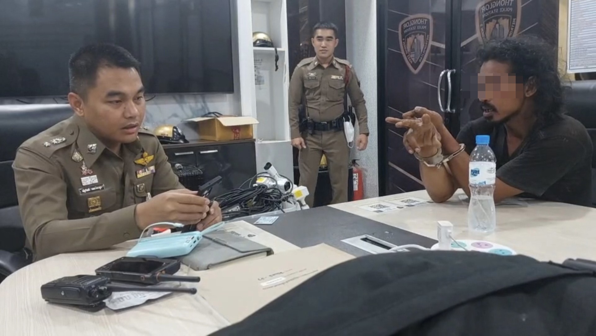 ทาง ร.ต.อ.กิตติเทพ จึงได้ตัดสินใจในการยุทธวิธีทีมชุดไม้ง่ามและใช้ปืนไฟฟ้า(TASER) ในการระงับเหตุครั้งนี้ผลการตรวจค้นพบอาวุธมีปลายแหลมสีดำ ความยาวขนาด 11.5 นิ้ว จำนวน 1 เล่ม อยู่ในมือขวาของผู้ต้องหาที่ถืออยู่ในขณะเข้าจับกุม โดยอ้างว่านำมีดติดตัวมาเพื่อป้องกันตัว จึงได้แจ้งข้อกล่าวหาเป็นความผิดฐาน “ พกพาอาวุธมีดไปในเมืองหมู่บ้านหรือทางสาธารณะโดยไม่มีเหตุอันสมควร ” จากนั้นจึงนำตัวผู้ถูกจับส่งพนักงานสอบสวน สน.ทองหล่อ เพื่อดำเนินการตามกฎหมาย