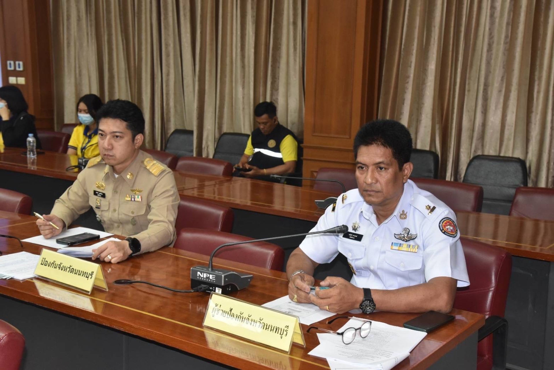 โดยมี ดร.ชัยเมศร์ ชัยพัชรกุลพงษ์ หรือดร.แก้ว ประธานกต.ตร.จังหวัดนนทบุรี ผู้แทนผู้บังคับการตำรวจภูธรจังหวัดนนทบุรี ผู้แทนรอง ผอ.รมน.จังหวัดนนทบุรี (ท) ปลัดจังหวัดนนทบุรี ป้องกันจังหวัดนนทบุรี หัวหน้าส่วนราชการที่เกี่ยวข้องหรือผู้แทน นายอำเภอหรือผู้เเทน ผู้กำกับการสถานีตำรวจภูธรต่างๆ หรือผู้แทน ผู้แทนหน่วยงานรัฐวิสาหกิจ ผู้แทนนายกองค์กรปกครองส่วนท้องถิ่น และเจ้าหน้าที่ผู้เกี่ยวข้องเข้าร่วมประชุม ทั้งนี้ภารกิจรักษาความมั่นคงและความสงบเรียบร้อยเป็นการขับเคลื่อนด้านความมั่นคงเพื่อความปลอดภัยของประชาชนในสังคม