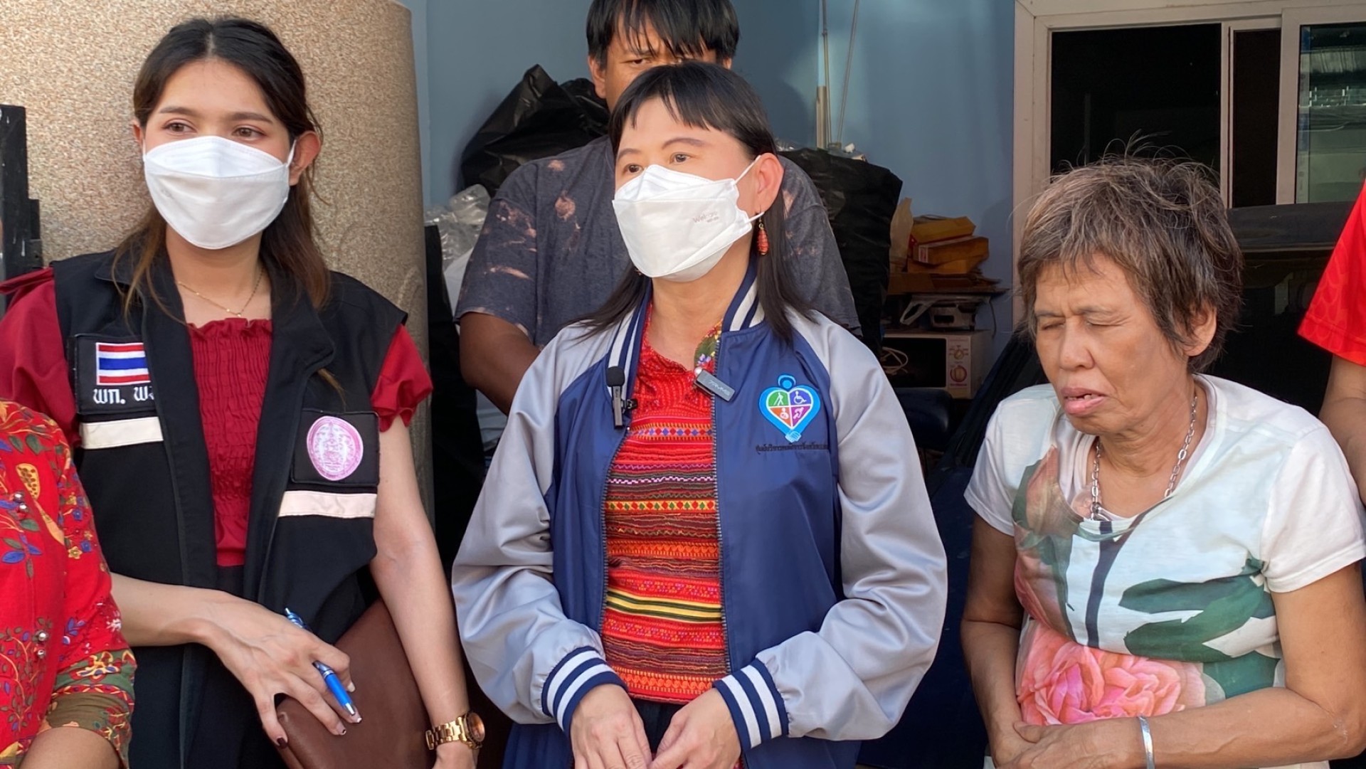 น.ส.น้ำทิพย์ จันทร์พลับ อายุ 72 ปี ผู้พิการทางสายตา (แม่บุญธรรมนายสุรศักดิ์ หรือม่อน) กล่าวว่า ตนกับลูกชายอาศัยอยู่กับผู้ป่วยมาตั้งแต่ผู้ป่วยอายุ 18 ปี พ่อแม่ของผู้ป่วยเสียชีวิตหมดแล้ว เหลือแต่พี่ชาย แต่ไม่ได้มีการดูแลหรือรับผิดชอบภาระในส่วนนี้ ผู้ป่วยเคยเล่าให้ตนฟังว่าสาเหตุที่หนีออกจากบ้าน เพราะพ่อแม่ไม่สนับสนุนให้ทำงานเกี่ยวกับกู้ภัย แต่ผู้ป่วยชอบและมีใจรักที่จะช่วยเหลือคน ผู้ป่วยเป็นเพื่อนสนิทกับลูกชายของตน เขาติดเตียงมาเป็นระยะเวลาประมาณ 2 ปีแล้ว ก่อนหน้านี้ตนอยู่ดูแล ทำกับข้าวให้กิน แต่ช่วงนี้ตนทำไม่ไหว เพราะเป็นกระดูกทับเส้น ตอนผู้ป่วยยังไม่ติดเตียงก็ช่วยดูแลตนเหมือนลูก ทุกครั้งที่ผู้ป่วยต้องเข้าโรงพยาบาล ตนจะใช้ชีวิตอยู่กับสุนัข 1 ตัว ในบ้าน ทั้งที่ตาก็มองไม่เห็น ตนรู้สึกสงสาร เพราะก่อนที่จะติดเตียงผู้ป่วยชอบช่วยเหลือคน ทำงานป่อเต็กตึ๊งหรือร่วมกตัญญู เพราะชอบและรัก ไม่อยากให้พ่อแม่บังคับจึงเลือกที่จะหนีออกมา ตนจึงรับเลี้ยงไว้และให้ช่วยกันทำงาน ส่วนแผลกดทับบนร่างกายของผู้ป่วย บางส่วนมาจากที่บ้านเก่าซึ่งเมื่อก่อนอยู่ที่ไทรน้อย เขานอนอยู่บนเตียงแล้วก็มีหนูมากัดมาแทะบาดแผลจึงทำให้เกิดการติดเชื้อ เพราะตัวผู้ป่วยเองไม่รู้สึกตัวและไม่สามารถไล่พวกหนูออกไปเองได้ ก่อนจะย้ายบ้านมาที่นี้ แต่ล่าสุดทางลูกชายสามารถติดต่อพี่ชายของผู้ป่วยได้แล้วเห็นว่าพรุ่งนี้จะเดินทางมาจากกรุงเทพ