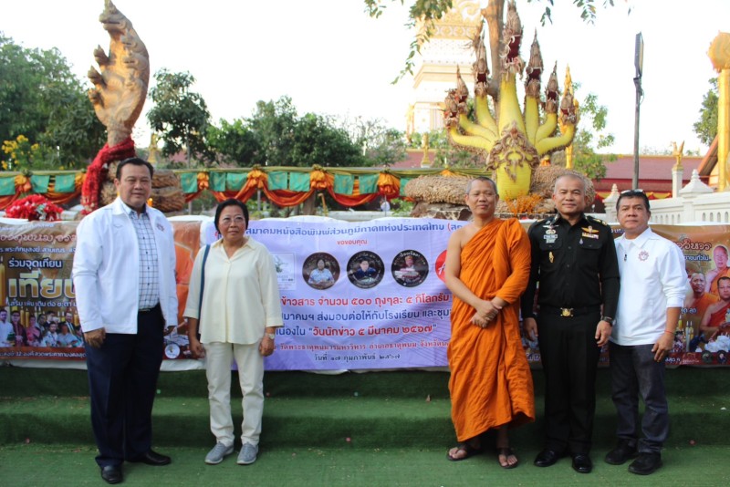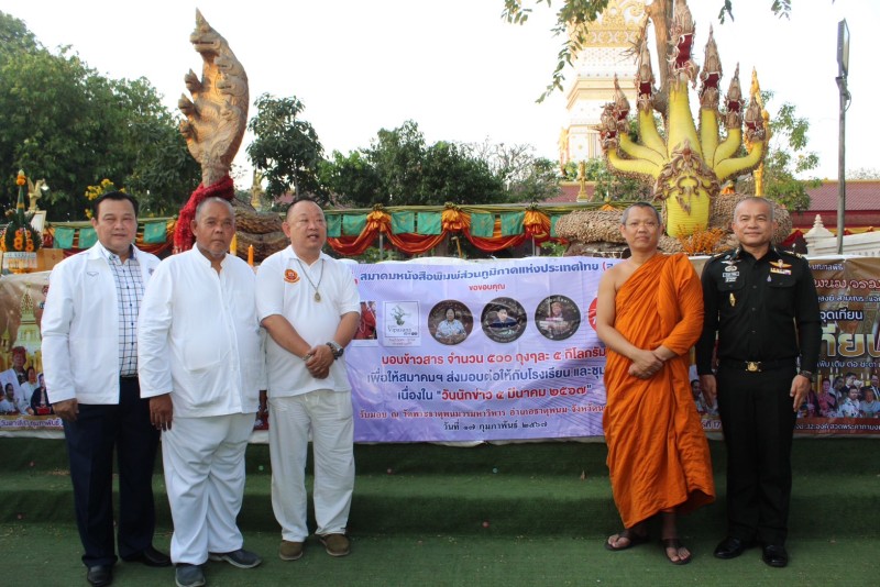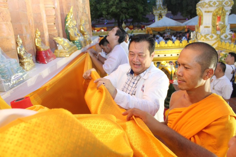 "สมเด็จธงชัย วัดไตรมิตร" เมตตาถวายผ้าไตร มอบให้กับพระภิกษุสงฆ์ วัดพระธาตุพนม วรมหาวิหาร โดยมี พลตรีวีรยุทธ รักศิลป์ รองแม่ทัพภาคที่ ๒ (นครราชสีมา) เป็นประธานในพิธีถวายข้าวสารให้กับโรงเรียนพระปริยัติธรรม วัดพระธาตุพนม ๒,๐๐๐ ถุงๆละ ๕ กิโลกรัม พร้อมแจกจ่ายให้กับประชาชนที่มาร่วมงาน และมอบให้กับสมาคมหนังสือพิมพ์ส่วนภูมิภาคแห่งประเทศไทย (สภท.๕๙ปี) จำนวน ๕๐๐ ถุง ท่านผู้มีเกียรติรวมจุดเทียน เสริม เพิ่ม เติม ต่อ ชะตา มงคลสุดๆ ห่มพระธาตุพนม พิธีเสกข้าวสารฯ